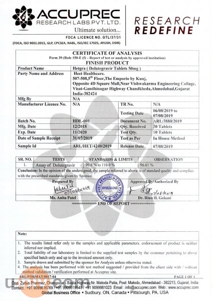 Hetgra (Dolutegravir 50mg) дженерик Тивикай Tivicay купить по выгодной цене в Индии